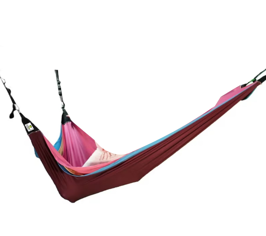 • La hamaca es un columpio muy utilizado en la sala de integración sensorial, mediante la realización de diferentes actividades ayuda a regular el estado de alerta, en el control postural, ya que se trabajan las reacciones posturales, el mantenimiento de la postura y el equilibrio, la coordinación bilateral.Con la hamaca de lycra fortalecemos los tres sistemas sensoriales básicos: